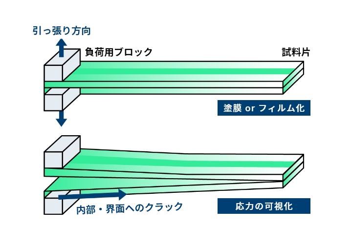 - 構造物中の目に見えない亀裂進展を発光により可視化